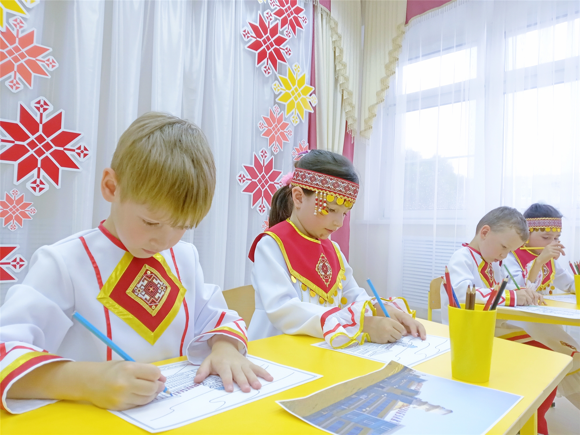 Так сегодня в детском саду прошел праздничный кконцерт для воспитанников и педагогов. Юные артисты прославили песнями, танцами и стихами родной город, поиграли в чувашские народные игры.